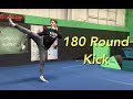 The roundhouse kick involves stepping overwhile snapping your leg to the side while spinning 180 degrees